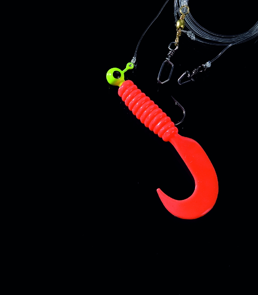 Voorzien van een originele japans rode twister en een gelen jigkop.