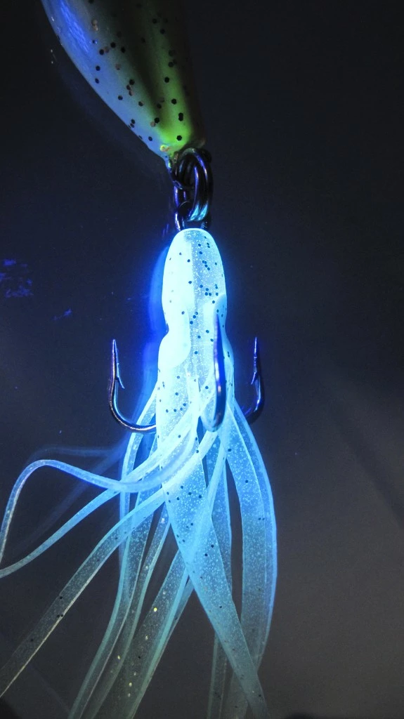 Het gebogen lichaams model en de UV actieve octopus maken deze tot een succesvol aas. Het lichaamsmodel laten hem verleidelijk tuimelen.