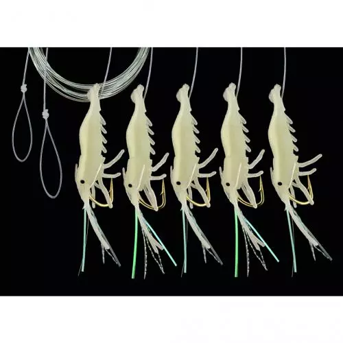 Makreel garnalen leader vangende leader met 5 zijarmen / garnalen. Perfect geassembleerd / geknoopt met aantrekkelijke garnalenimitaties.Â