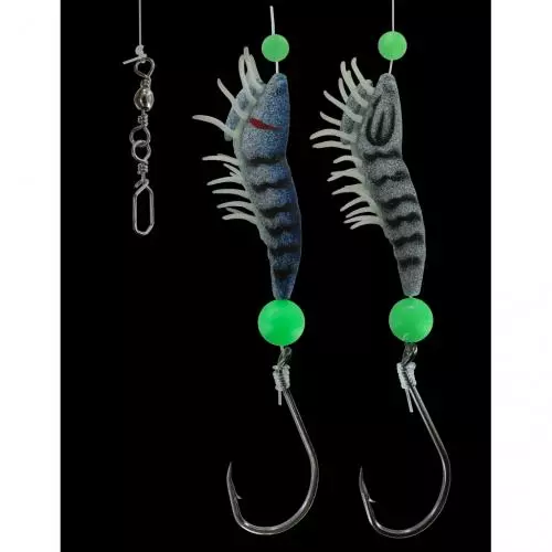 Calamares leader voor Noorwegen. Vangende leader met 2 zijarmen; Perfect geassembleerd / geknoopt met aantrekkelijke UV-garnalen imitaties. Beschikbaar in pakkende kleurvarianten.
