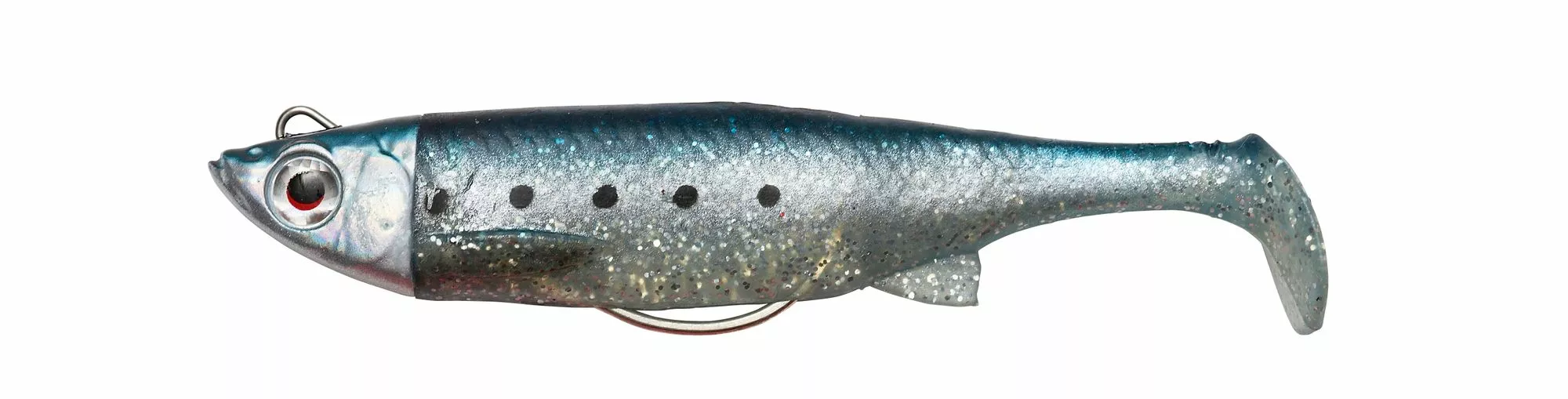 Perfecte imitatie van een kleine prooivis op basis van de scan van een kleine sardine. Het aas heeft een uniek clipsysteem dat het gemakkelijk maakt om haakmaat en type te veranderen. Kan worden gevist met dreg of enkele haak of zelfs onkruidloos. Het zachte TPE-materiaal is zeer duurzaam en bestand tegen zelfs de meest pittige overvallers. De zachte body is stevig op de aluminium kop gelijmd. Het aas speelt zowel bij het starten als bij het dalen met een hoogfrequente, levendige en flankerende schopbeweging – een zeer veelzijdig aas dat net zo goed als elke roofvis in zoet en zout water kan vangen.