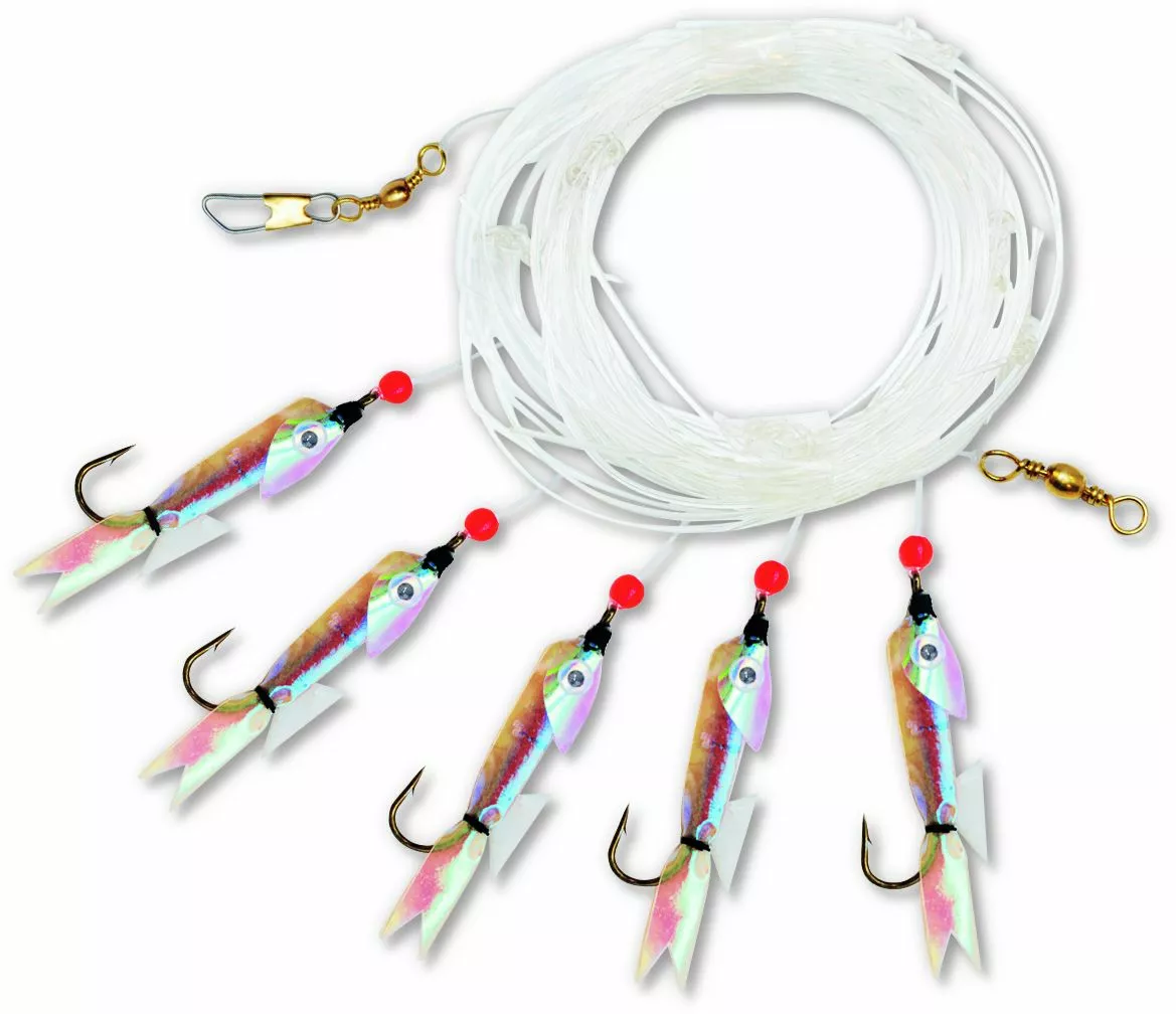 Universele paternoster met 5 verleidelijke kunstaasjes. Haakmaat 1/0.