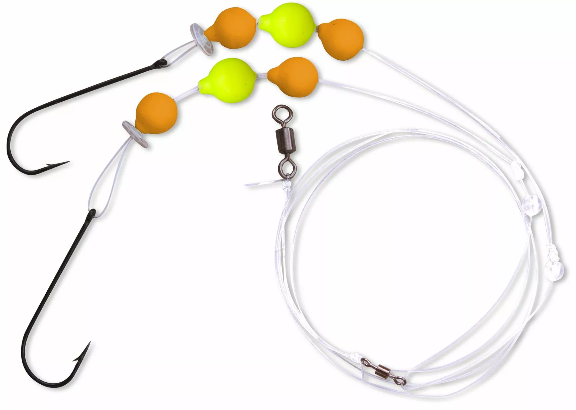 Haakmaat 1, hoofdlijn 0,45 mm, onderlijn 0,45 mm, twee haken. Voor boot-, oever- en strandvissers op kabeljauw, rog, platvis en zeebaars. Wordt geleverd op een spoel.