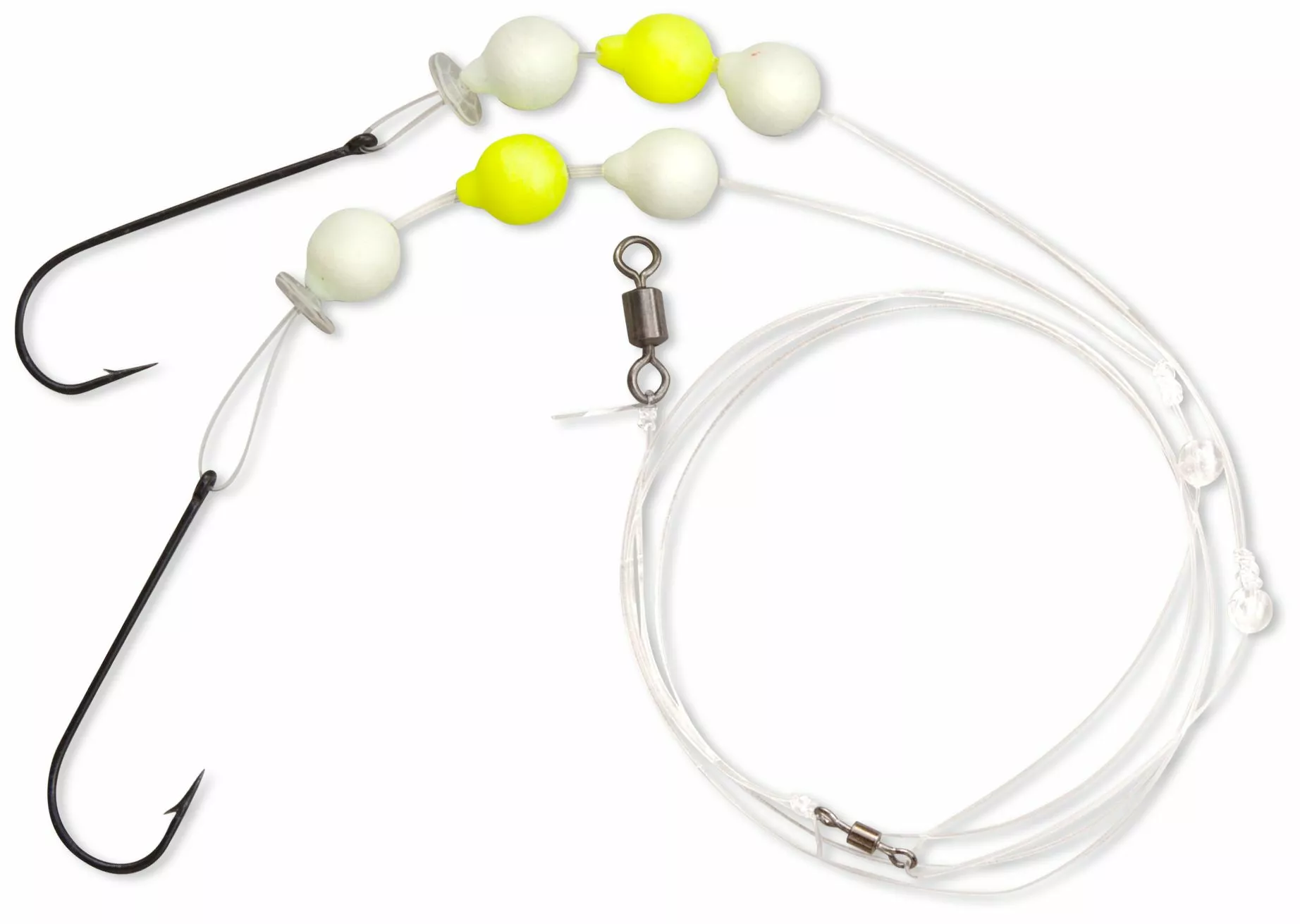 Haakmaat 1, hoofdlijn 0,45 mm, onderlijn 0,45 mm, twee haken. Voor boot-, oever- en strandvissers op kabeljauw, rog, platvis en zeebaars. Wordt geleverd op een spoel.
