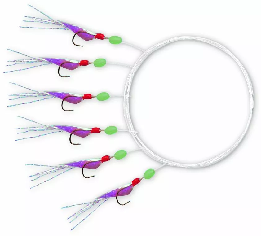 Ideaal voor het vangen van aasvis, kleine haak met vissenhuid. Lijndiameter 0.35 mm, lengte 150 cm, 6 haken.