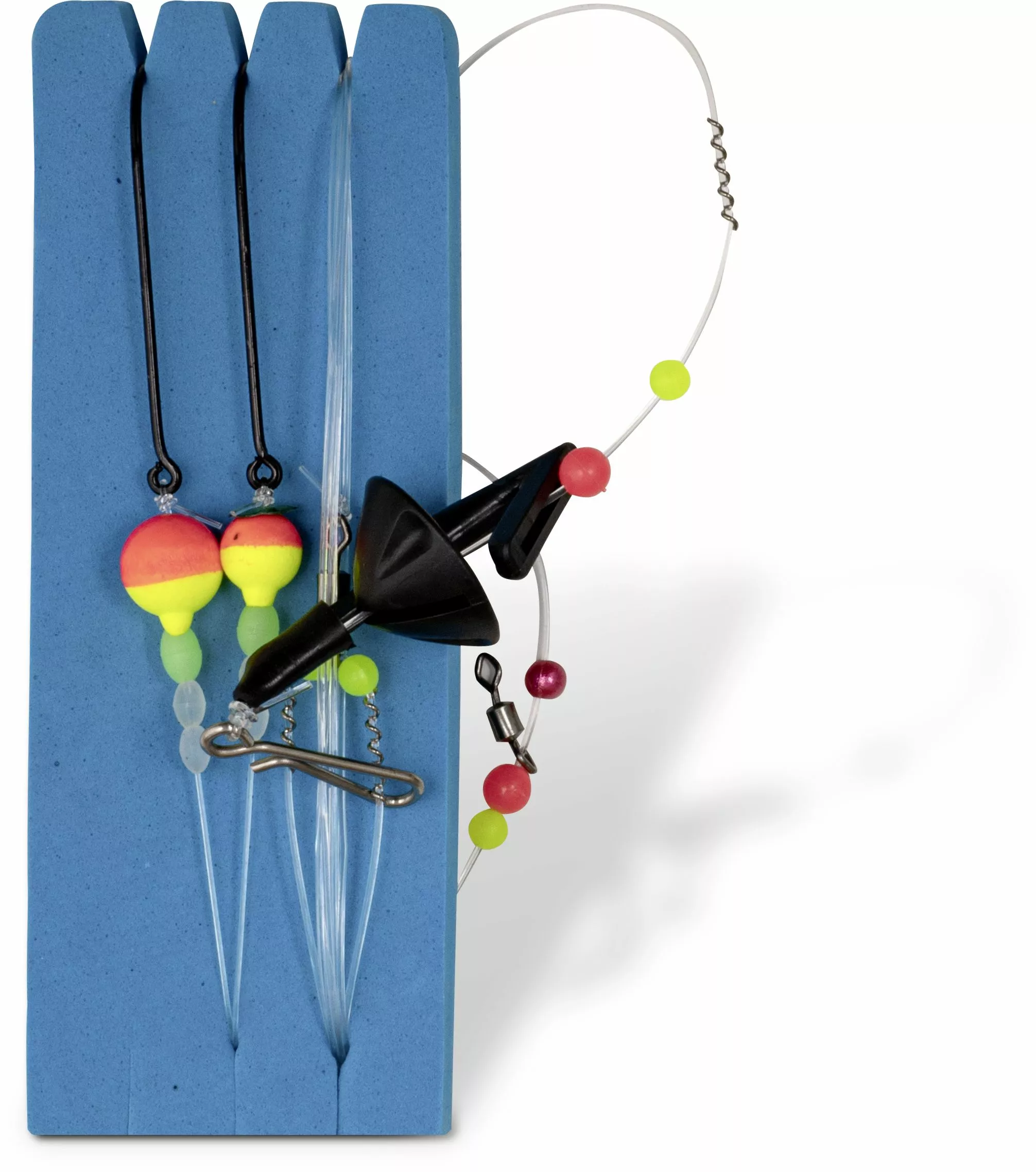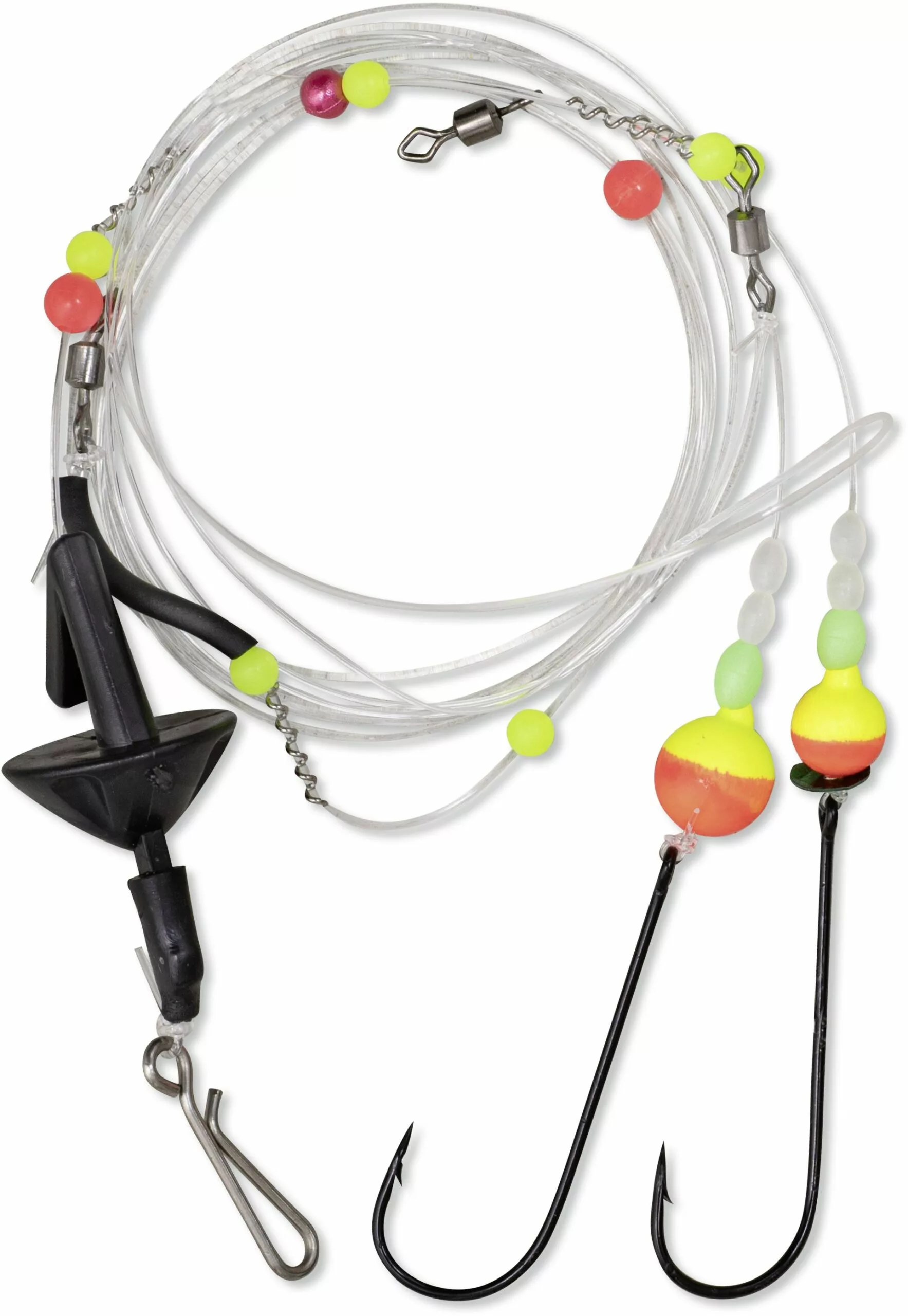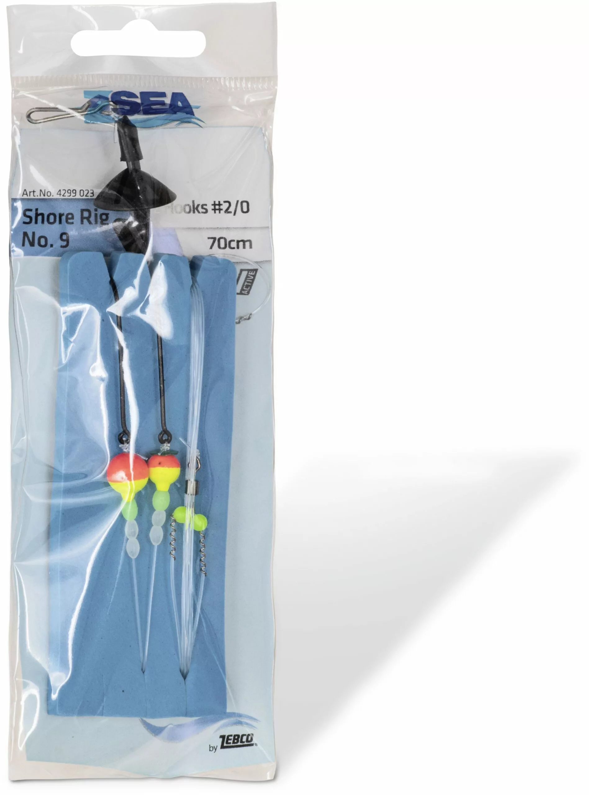 Haakmaat 2/0, hoofdlijn Ø 0.70 mm, onderlijn Ø 0.50 mm. Lengte montage 70 cm. Pulleye met twee haken. Voor kantvissers.