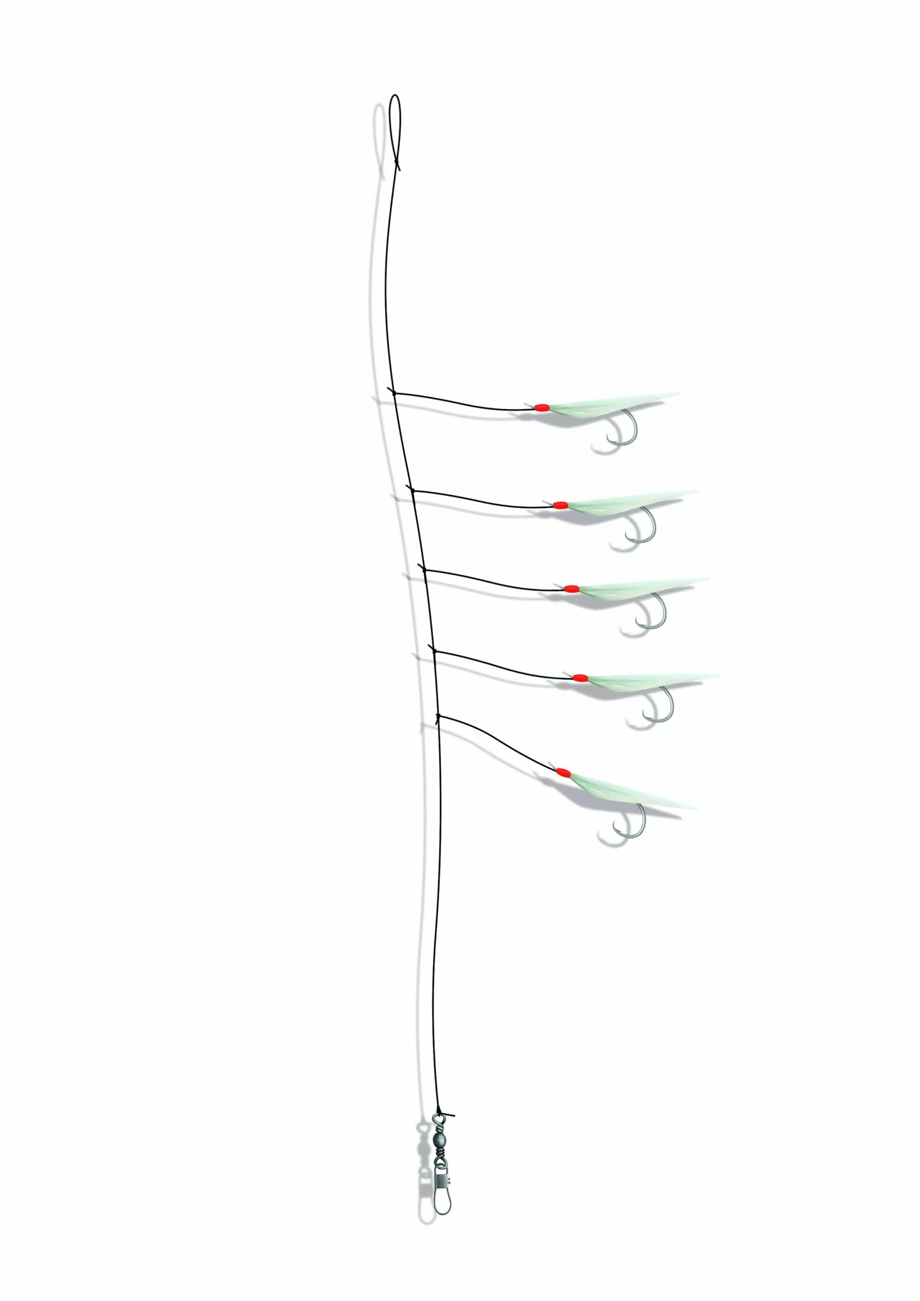 Haringmontage met 5 cirkelhaken, waardoor u amper lossers krijgt.